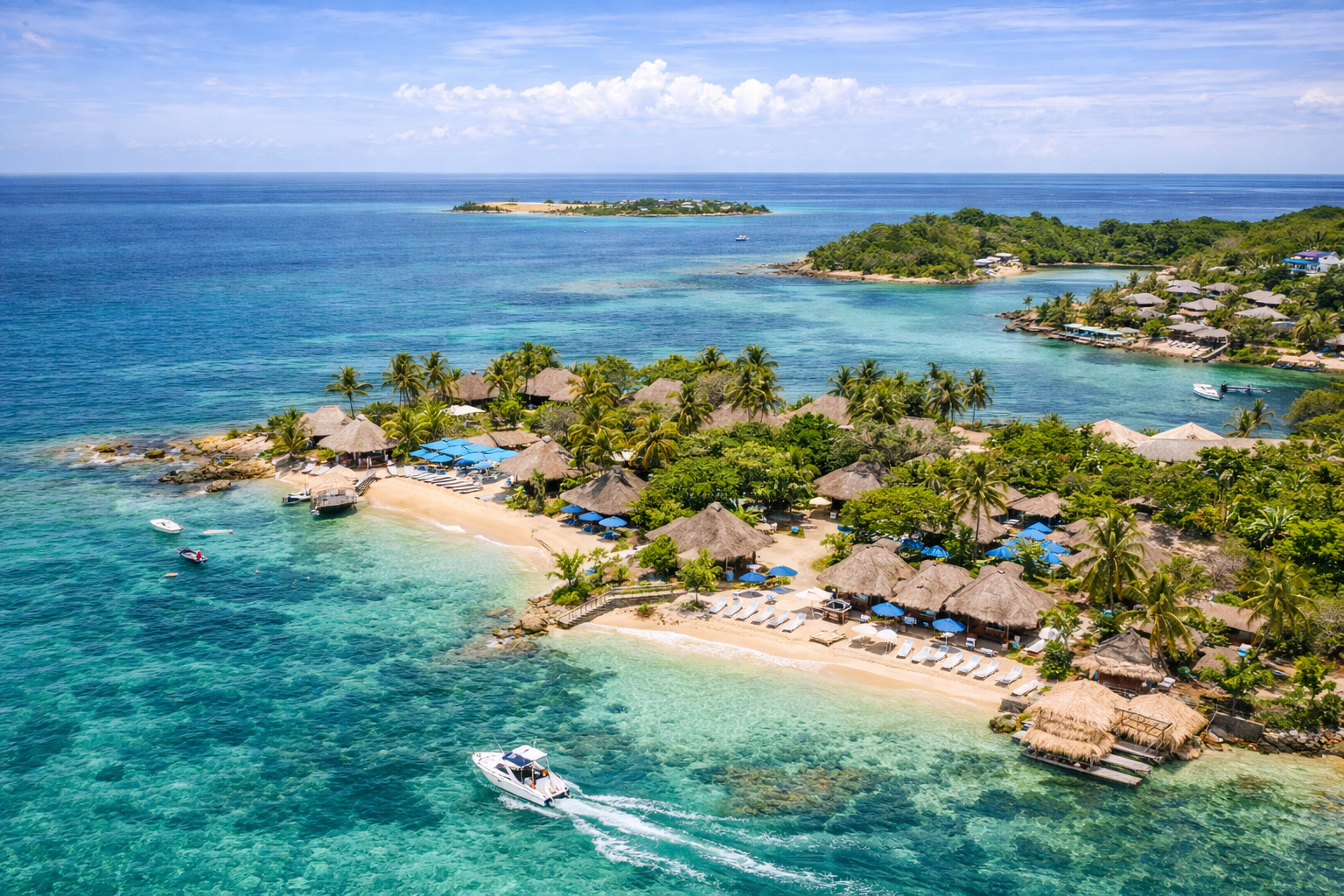 Explore vibrant beach clubs in the Rosario Islands, relaxing oceanfront escapes on Tierra Bomba Island, and the famous turquoise waters of Playa Blanca in Barú.