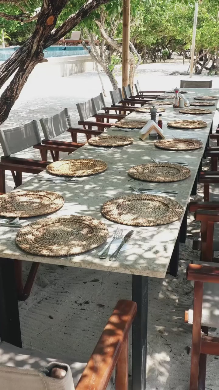 - À la carte lunch with 12 options + drink included — shaded dining room or seaside seating